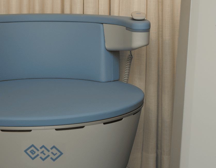 Helt ikke-invasiv behandling uten kirurgi, injeksjoner eller smerte. Du sitter fullt påkledd i stolen og kan slappe av mens teknologien gjør jobben.